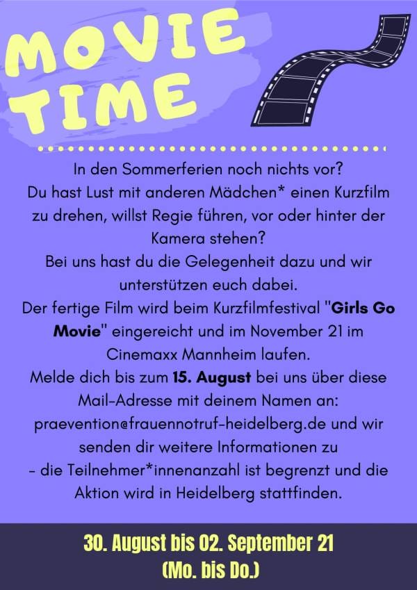 Der fertige Film wird beim Kurzfilmfestival „Girls go Movie“ eingereicht und im November im Cinemaxx Mannheim laufen.