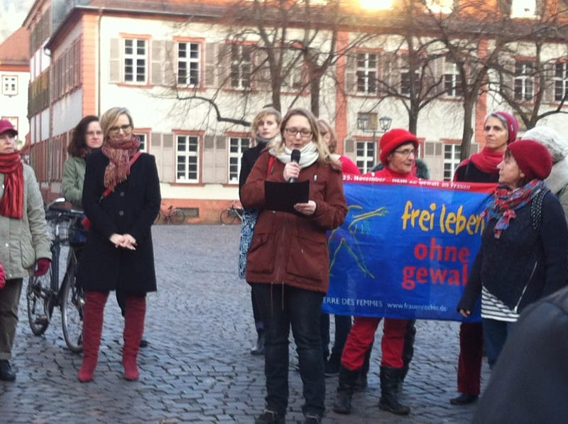 Außerdem nehmen wir uns heute den öffentlichen Raum um ein Zeichen zu setzen. Ein Zeichen gegen sexualisierte Gewalt an Frauen Mädchen und für das Recht auf ein selbstbestimmtes Leben!