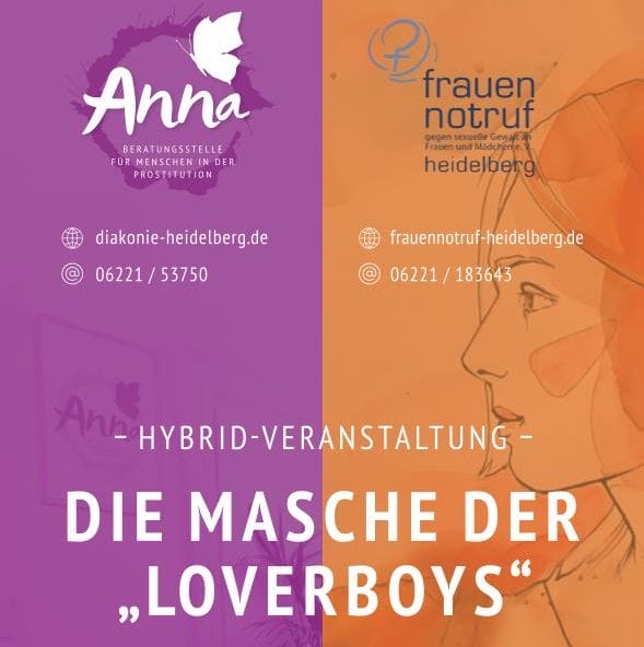 Der Frauennotruf Heidelberg und Anna, die Fachberatungsstelle für Menschen in der Prostitution des Diakonischen Werks, laden ein zur Veranstaltung „Die Masche der Loverboys. Wenn aus Liebe (Zwangs)Prostitution wird.“